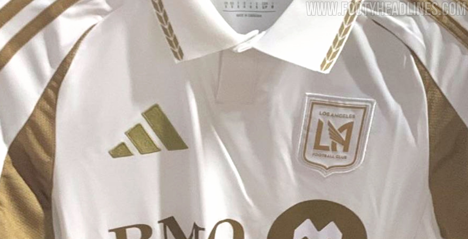 The Adidas LAFC 2025 away shirt is predominantly white with gold accents. It is the same colorway as in LAFC’s inaugural season, in 2018.