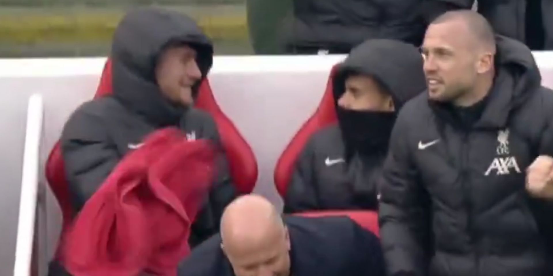 Cameras present managed to capture how the two South Americans celebrated on the bench, as our No.10 threw a towel on the face of the Colombian.